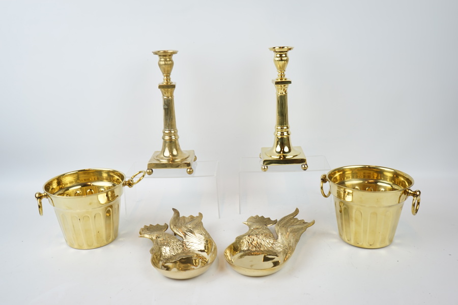 Skålar, ljusstakar och ytterfoder, 6 delar, mässing, Munka Sweden, samtida.