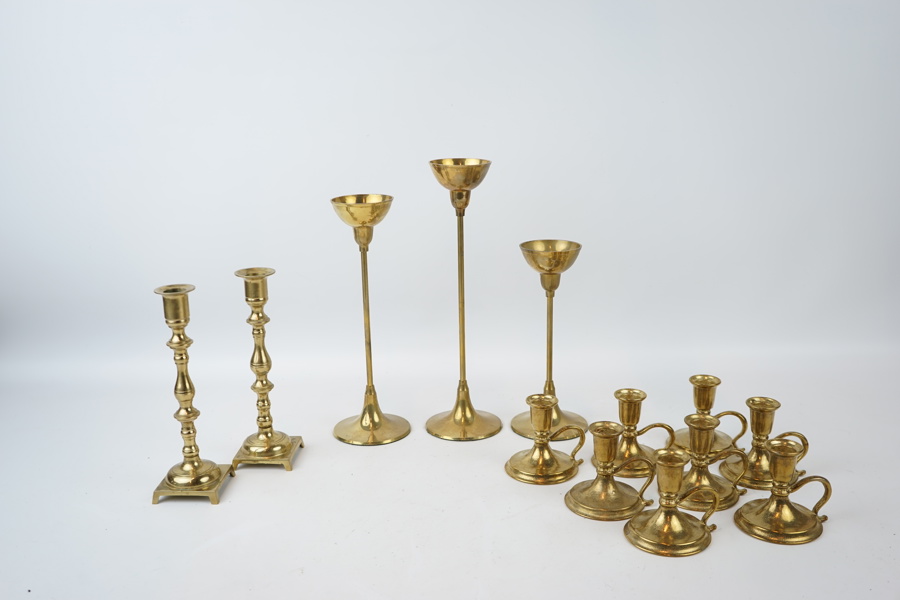 Ljusstakar och klämmor, ett parti, mässing, Munka Sweden.