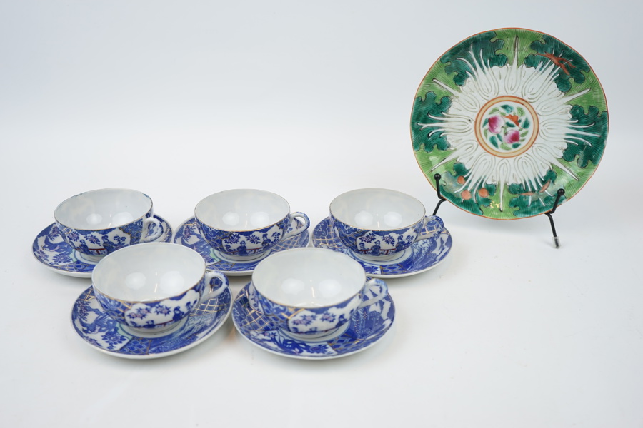Teservisdelar och assiett, 5 delar, porslin, Japan.