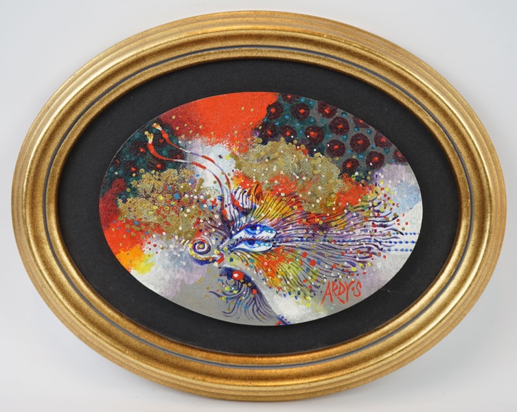 Ardy Stüwer, ''Raingodess'', olja på duk, signerad, daterad 1995.