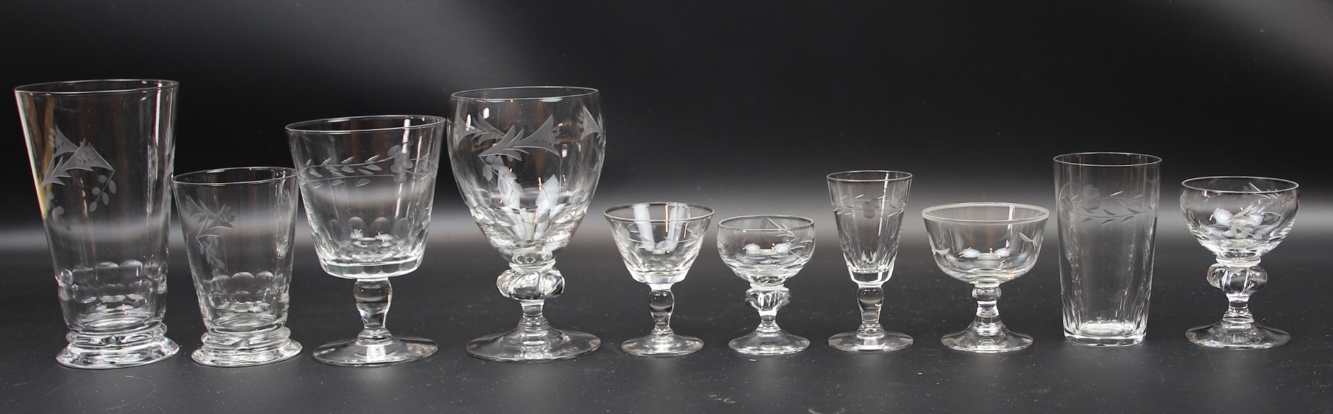 Glasservisdelar, 91 st, 2 olika serviser, bl.a Trelleborgs glasbruk, 1900-tal.