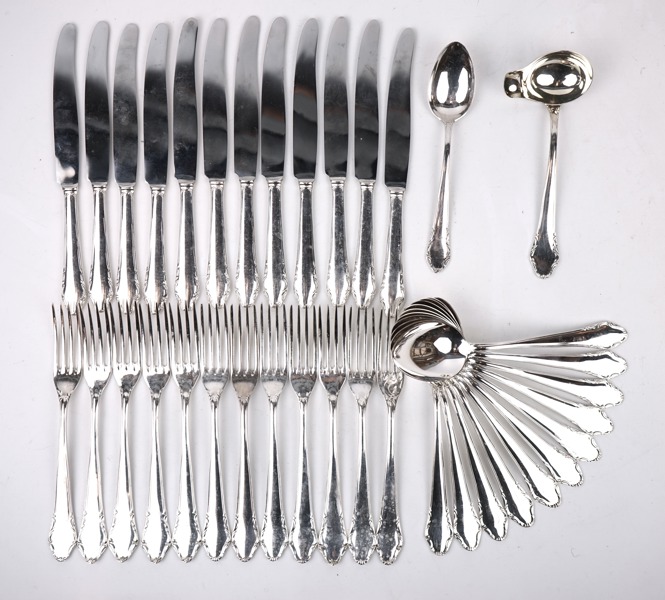 Bestickservisdelar, 37 st, nysilver, ''Haga''.