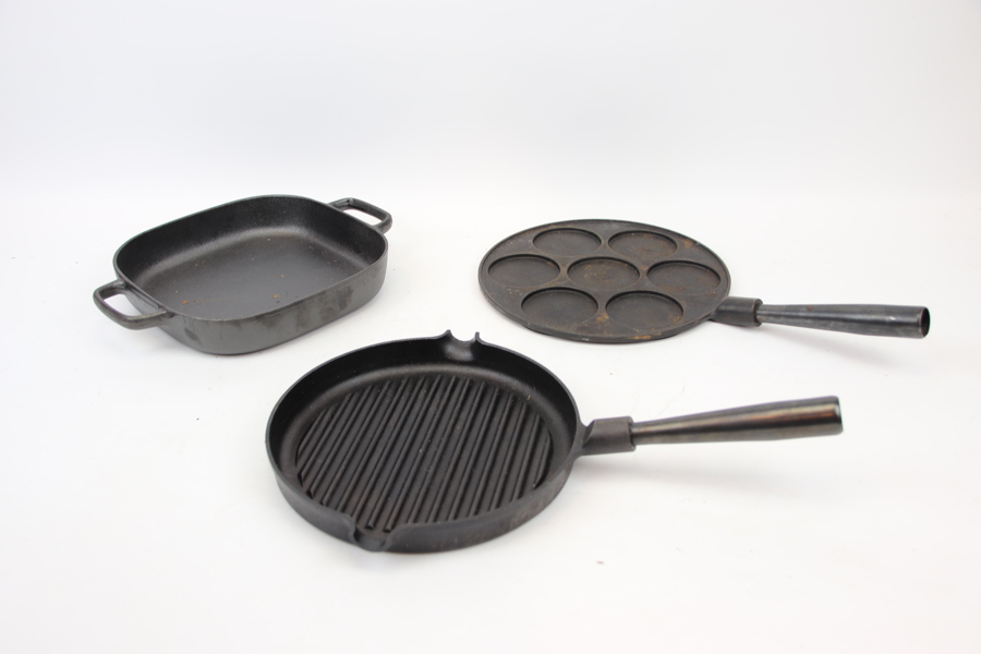 Gjutjärnspannor, 3 st, bl.a Gense.
