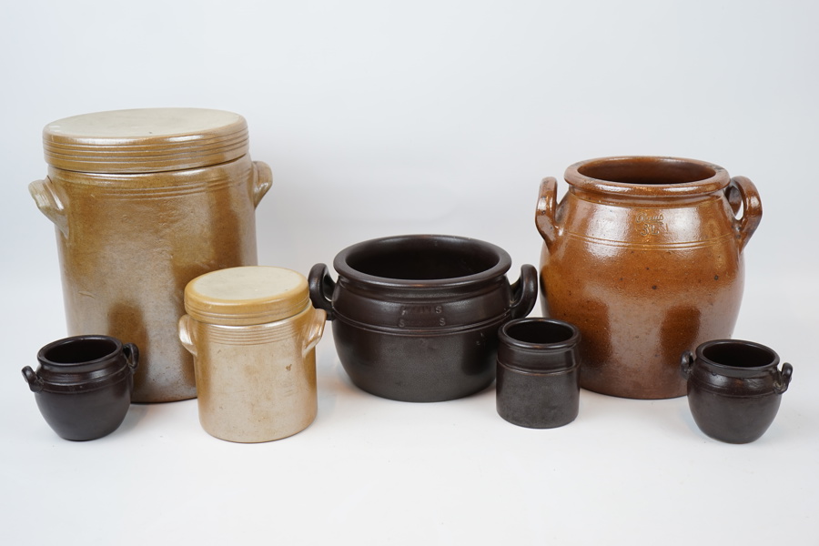 Burkar och krus, 7 delar, stengods, bl.a Höganäs.