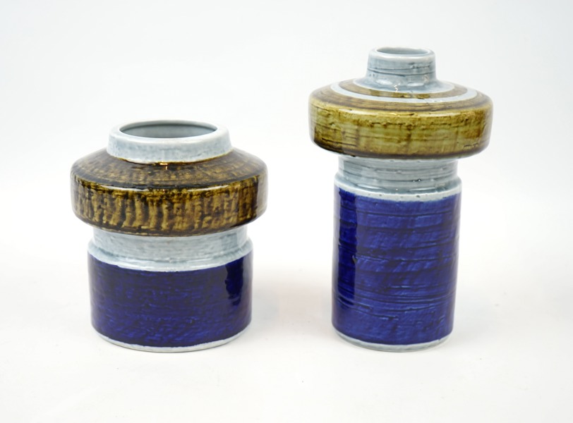 Olle Alberius, vaser, 2 st, stengods, ''Titus'', Rörstrand.