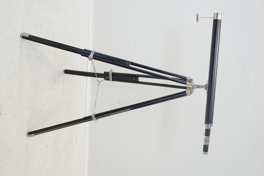Tubkikare, skinn/metall på stativ, trä, höj/sänkbart.