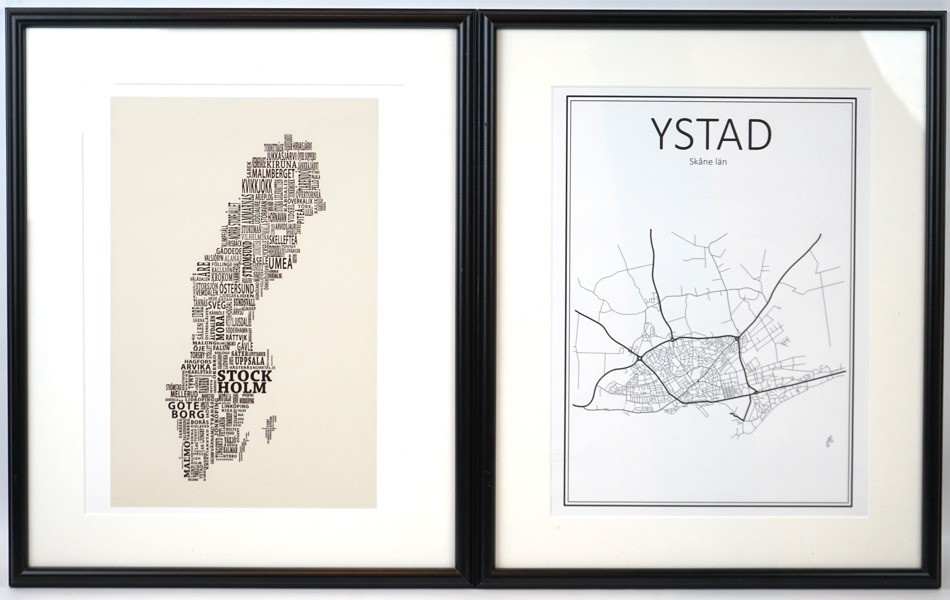 Kartor, 2 st, bl.a Ystad.