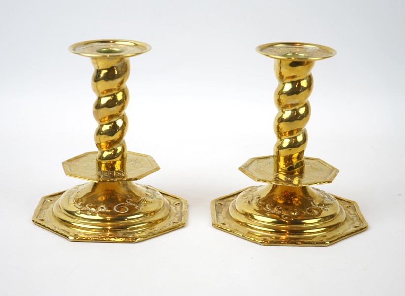 Richard Ringström, ljusstakar, ett par, mässing, barockstil, Hälsingborg, 1900-talets första del.
